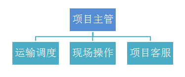 公司采用項目責(zé)任制,在運輸服務(wù)類業(yè)務(wù)的團隊搭建方面單獨設(shè)立項目組,專項負責(zé)該項目業(yè)務(wù)的管理、計劃、組織、實施、控制與反饋工作,項目組織構(gòu)架:
